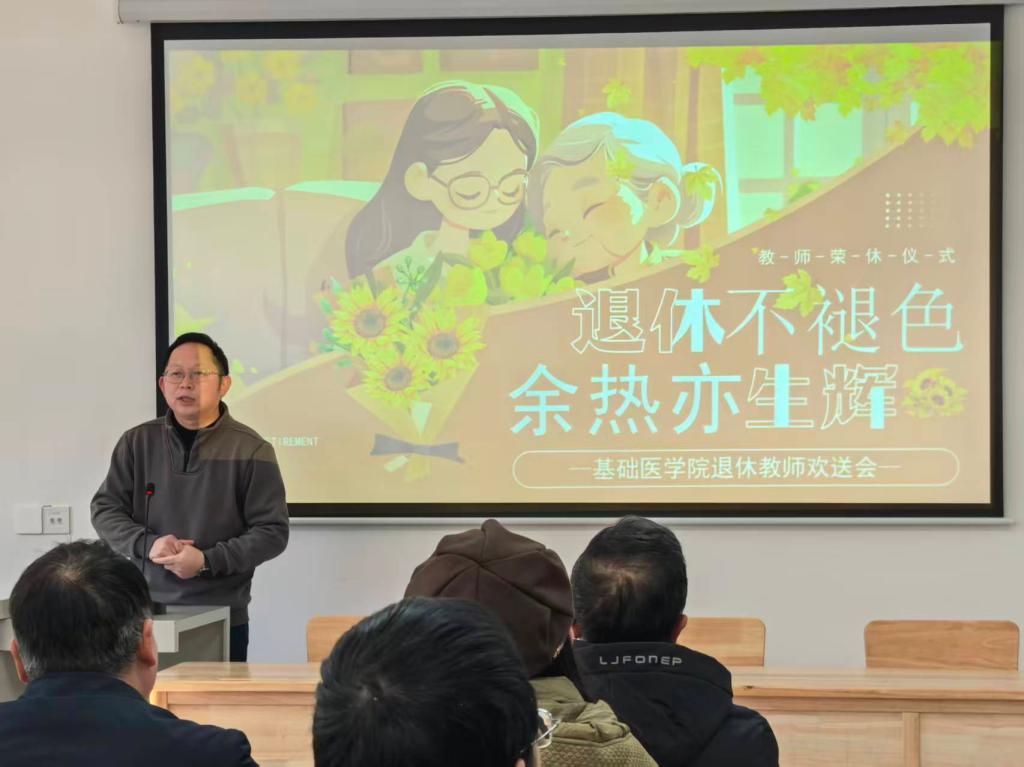三位退休教师在仪式上也发表了感言。他们深情回顾了自己在基础医学院工作的难忘岁月,言语中充满了对教育事业的热爱、对学院培养的感激以及与同事们结下的深厚情谊。他们表示,虽然即将离开工作岗位,但心永远与学院相连,会一如既往地关心和支持学院的发展,衷心祝愿学院的明天更加辉煌。