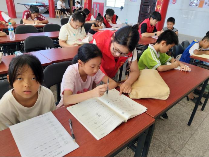 6月30日-7月4日,在瑶前村新时代文明实践站,实践队成立专项志愿服务队,开展了系列主题支教活动。针对不同孩子的需要,服务队详细制定每日教学计划,依据孩子年级特点进行分组专项辅导,精准对接学习需求。对于幼升小的孩子,队员们从最基础的字母表教起,帮助他们做好升学的识字准备;针对二三年级的孩子,队员们着重纠正他们的握笔姿势和坐姿,通过规范的字帖练习,培养良好的书写习惯;而对于高年级学生,则着重辅导他们的暑期作业,指导他们学习背诵下学期的古诗词,共同解决各项作业的疑难问题。在活动过程中,实践队还加入了红色教育、安全教育、物理实验、职业启蒙情景演绎等互动性较强的科普活动。在寓教于乐的学习中,孩子们不仅巩固了基础文化课,也跟随大学生们深入探索了更广泛的世界。