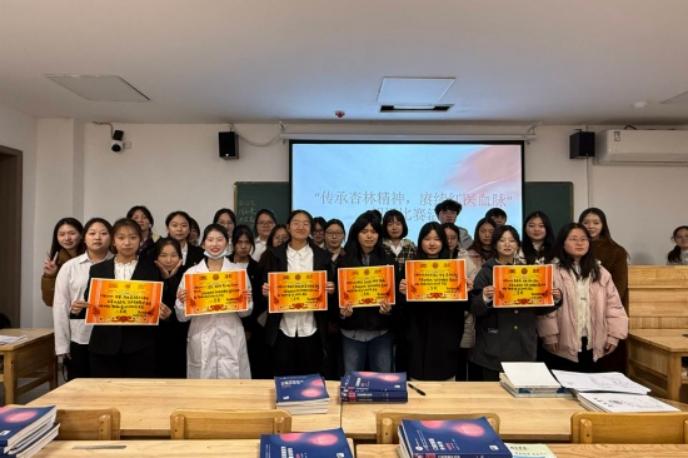 为引导医学生厚植医德情怀,传承敬佑生命救死扶伤的医学精神,筑牢政治坚定对党忠诚的红色信仰,基础医学院于2025年11月19日晚19:00在研究生楼121举办了“传承杏林精神,赓续红医血脉”朗诵比赛。本次比赛由刘延盛主持,115名参赛学子组成27支队伍同台竞技,展现新时代医学生的精神风貌。