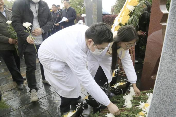 3月30日上午,九江市清明追思活动在贺嘉山陵园遗体器官捐献者纪念碑前举行,九江市政府、市红十字会相关领导和工作人员,基础医学院院长许晓源及学院师生代表到场参与。活动由市红十字会党组书记汪玉贵主持,全员在低沉的哀乐中肃立默哀,深切缅怀每一位无私的捐献者。马海威副市长致辞呼吁更多人加入捐献行列,用奉献延续生命。