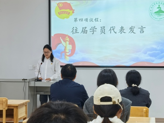 在学员代表发言环节,往届学员代表周笑、新生学员代表卢海涛先后发言。周笑结合自身经历寄语新学员:入团是全新起点,要珍惜学习机会,筑牢信仰根基,以实际行动践行青春使命,努力成长为担当民族复兴大任的时代新人。卢海涛则分享了自己始终坚守入团初心、积极向团组织靠拢的经历,并表示今后将以更高标准严格要求自己,争取早日成为一名合格团员。