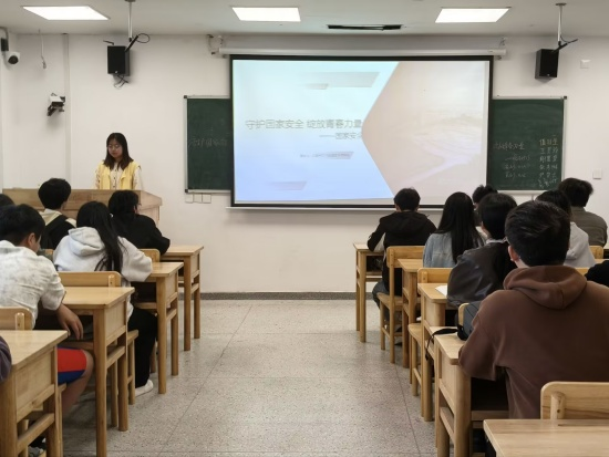 在教学楼B502教室,口腔A2513班团支书席紫琼组织同学们集中学习总体国家安全观,深入了解政治安全、网络安全、文化安全等领域知识。通过宣讲、案例分析与交流,同学们深刻认识到国家安全重要性,立志以青春力量守护国家安全。