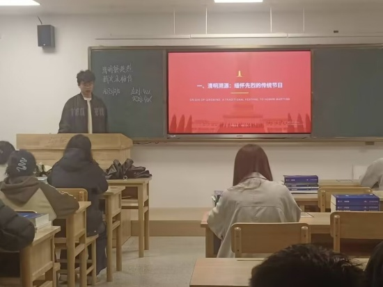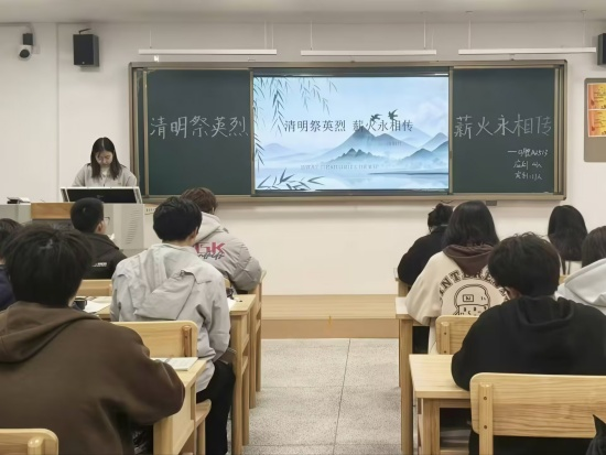基础A2522班团支书张一帆在研究生楼125教室以PPT讲解形式,回顾了革命先烈舍生取义、保家卫国的不朽功勋,并阐释了清明节承载的红色记忆与英烈精神的时代内涵。张一帆指出,新时代青年学子应铭记历史、崇尚英烈,将爱国情、强国志转化为勤学笃行、锤炼本领的实际行动,赓续红色薪火。