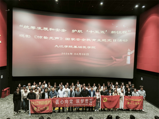 2026年4月15日是第十一个全民国家安全教育日,为深入推进爱党爱国教育与红色教育走深走实,全面强化师生国家安全意识,筑牢总体国家安全观思想根基,4月8日晚,基础医学学生党支部开展全民国家安全教育主题党日观影活动,学生党支部全体党员、学生干部及入党积极分子齐聚十里万达影城,共同观看国安题材电影《惊蛰无声》。
