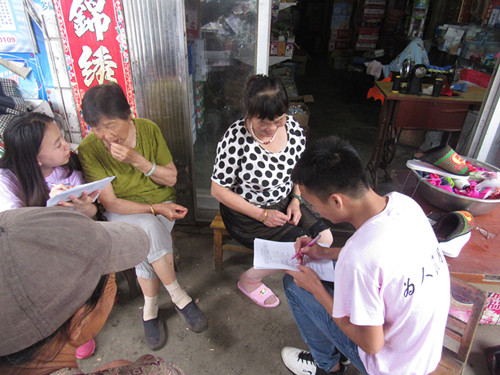 | 到马回岭镇街道开展“农村合作医疗”问卷调查 7月2日上午,随着“三下乡”活动的持续进行,基础医学院爱心医疗服务队来到马回岭镇街道进行“农村合作医疗”问卷调查。本次问卷调查的目的在于了解农民群众的心声,倾听农民朋友对新型农村合作医疗的建议,更好地推动新型农村合作医疗发展。   外面虽然下着大雨,但同学们的热情丝毫不减。秉承“服务群众”的宗旨,爱心医疗队的同学们走上了街道,走进了社区。在调查的过程中,我们首先了解了被调查村民的基本信息,比如:文化程度、年收入、年支出等等。随后,我们深入调查了居民们对于新型农村合作医疗的了解程度以及对于该方面的意见和建议。在调查后我们发现,大多数村民对于“新农合”的认识相对浅显、简单,所以根据村民们的问题,爱心医疗服务队的同学们也耐心地为其进行讲解。在听完同学们的介绍后,居民们对此也有了一个基本的了解,也更愿意配合调研工作。    随后,同学们就当地就诊条件进行简单了解,大多数村民表示对于轻微病症都会选择到当地镇中心医院进行就诊。随着经济条件的提升,少数村民会进行一年一次的全身性检查,有些村民也会选择到九江县医院进行检查。这也说明“身体是革命的本钱”的观念渐渐深入人心。最后,为了感谢村民们的积极参与,同时也送上我们的祝福,我们也向参与问卷调查的村民赠送了“医用手套和口罩”等慰问品。   此次问卷调查活动,不仅使服务队的同学们了解到村民们的医疗情况,也锻炼了大家的交流能力,与此同时,也使大家收获了更多的快乐和经验。 |