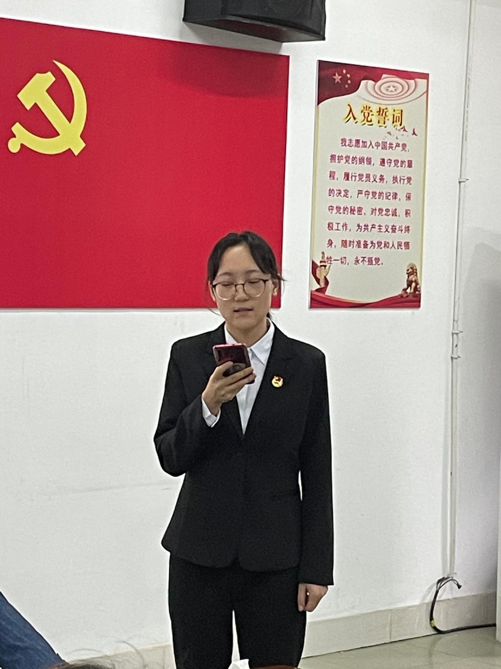 一首昂扬的《国际歌》为此次的动员会拉开序幕。美春同学代表参加培训的发展对象们进行表态发言,她希望通过此次的培训不断完善自己、提高自己,在今后的生活和学习中能更好的发挥出党员带头作用。学生党员刘璐璐同学发言,她为大家分享了自己在发展对象期间的经历和经验,她还表示全心全意为人民服务不只是表现在口头上,更重要是表现在平时的行动中,在国家和党需要我们的时候,要有“我能上”的思想,把国家的利益放在第一位。