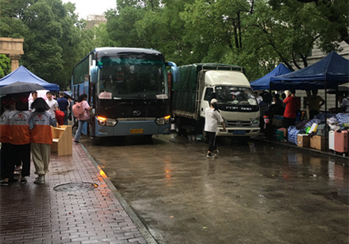 早晨7时许,搬迁工作正式开始。各班把行李放到指定地点,按照班级顺序有条不紊地把行李搬上车。在雨中,各位领导老师多次帮助同学们搬运行李物品上车,并与同学们亲切交谈,鼓励大家尽快适应新校区新环境,安心学习。在此过程中,同学们都发扬互帮互助、团结友爱的精神,男同学主动承担沉重行李的搬迁任务。最后,到庐峰校区后,新任班主任于门口迎接同学们。