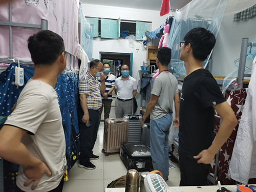 在走访慰问过程中,学院领导深入返校学生每一间宿舍,与同学们亲切交谈。叮嘱大家一定要增强防疫意识,做好日常防护工作;坚持每天早中晚三次体温检测;劳逸结合,提高身体免疫力。学院领导同时督导大家要进行健康卫生大扫除,养成良好的卫生习惯。尤其作为一名医学生,同学们更应该提高健康卫生意识,拓展疾病预防知识,提升专业素养。