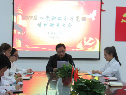 对入党积极分子进行集中培训,是党章和《发展党员工作细则》的规定,是赋予基层党组织的一项重要工作,为顺利完成该项使命,10月17日中午,基础医学院于华文楼105教室举行了2019年下半年入党积极分子集中培训动员大会,本次动员大会由学生党支部书记黄涛主持。