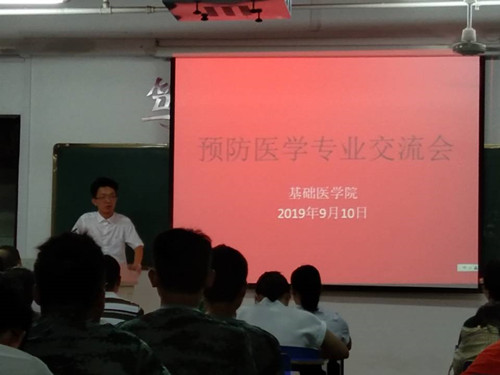9月10日,基础医学院在华文楼103开展预防医学专业交流会。党委委员傅文学、教研科科长牛力、学生科副科长郑锋、预防医学本科生出席本次交流会,本次会议由黄邵鑫博士主持。