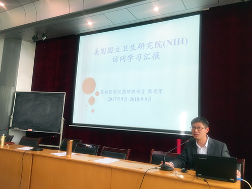 会上,傅文学委员传达了学校“转发省委教育工委、省教育厅《关于认真组织学习省委书记刘奇在南昌大学形势与政策报告会上的讲话的通知》”文件精神。在美国国立卫生研究院(NIH)访学进修一年归来的药理学教研室主任熊建军博士做了访学汇报,使全体教职工开阔了学术视野,为中青年教师在学术方面的创新思维提供了更多的指导与借鉴。