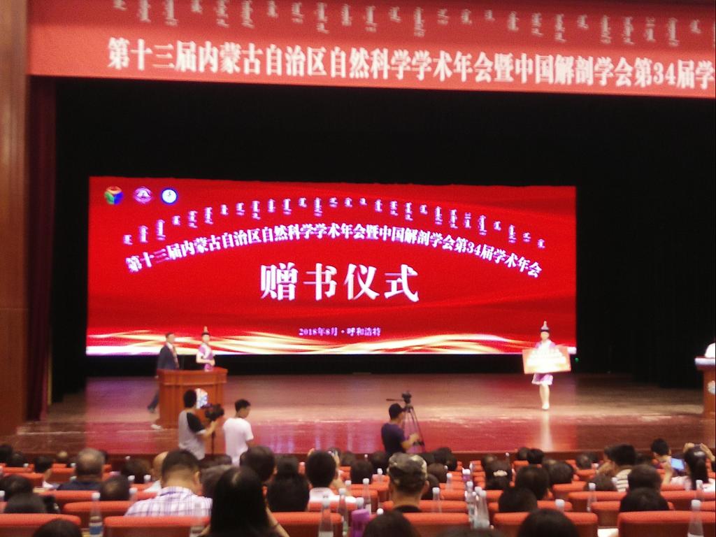 大会开幕式由内蒙古自治区党组书记麻魁主持,内蒙古自治区副主席、科协、教育厅、科技厅领导和解剖学会理事出席了大会开幕式。内蒙古医科大学白长明书记、中国解剖学会理事长张绍祥在开幕式上致辞,开幕式还举行了中国解剖学会向盟市科协捐赠图书和中国解剖学会内蒙古服务站成立揭牌仪式。