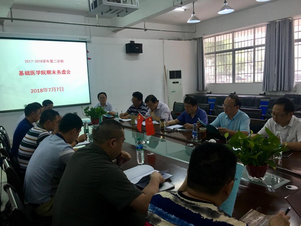 7月7日下午,基础医学院在浔东校区华文楼105室召开期末务虚会。学院领导班子成员,各支部书记、各部门负责人、各教研室正付副主任等二十余人参加了会议,会议由车向新院长主持。
