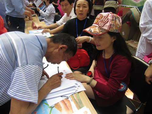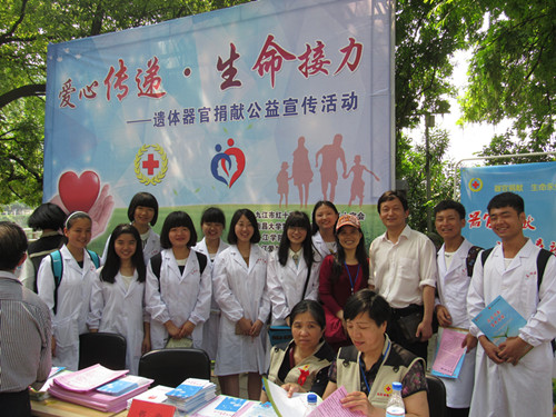 | 为了让更多人了解遗体器官捐献这一公益活动,造福社会,5月6日,基础医学院于烟水亭举行“党建+遗体器官捐献公益宣传”活动,基础医学院党员师生、九江市红十字会工作人员和志愿者、浔阳晚报新闻媒体记者以及爱尔眼科专家参加此次活动。     活动开始后,有许多老年人前来咨询有关事项,工作人员非常热情并一一为他们解答疑惑,在了解了情况后,有人自愿填写了捐献登记表,随即也带动了更多的人参与到其中。此外老人们还可以获得由爱尔眼科提供的眼科义诊,专家细心的为老人们检查眼睛,并认真听取他们的一些症状,然后告诉他们有关问题和注意事项,老人们也非常有秩序的排队等候进行检查。基础医学院学生会给已经填好登记表和检查完的老人们发放纪念品,此次活动圆满结束。     此次活动,大力宣传了关于遗体器官捐献的有关内容,并鼓励更多人参与到其中。生命因短暂而珍贵,生命因奉献而美丽,希望可以让“志愿捐躯”的文明新风吹遍大江南北,让每个人的生命离开得更加有意义! |