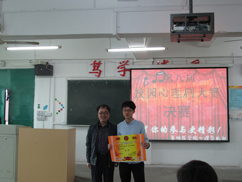 | 4月24日下午,以“关爱生命、阳光你我”为主题的基础医学院第八届心理剧大赛决赛于思阶四举行,基础医学院党委书记余朝阳、浔东学生科副科长汪兆年、基础医学院团委书记淦明南、学生科副科长张波、辅导员姚中平、班主任赵勇、王丽丽、黄涛老师和学生代表观看了此次大赛。   此次活动由基础医学院学生会心理导航部主办,参赛班级的剧情涉及到亲情、友情、爱情以及医患之间等多个方面,也充分反映了大学生在现实生活中遇到的各方面的问题,并给出了正确的解决途径。在赛场上,演员们充分的准备,丰富的感情、形象生动的表演将故事情节演绎得激动人心、扣人心弦,不时引起台下观众的热烈掌声。剧中很多片段也深深地触动了我们心中最柔软的部分,令人回味,令人深思。经过激烈角逐,定向班(A1521)的《梦想,又是一片蓝天》脱颖而出,他们用最真诚的宽容和体谅来化解室友间的矛盾,表演得淋漓尽致从而荣获一等奖,该剧也将代表学院参加全校的总决赛。本次共有八支队伍角逐桂冠,精彩纷呈。同学们将亲情,友情,爱情融入戏剧,在舞台上演绎自己身边的事,有冲突,有感恩,有感动,更有行动。   大赛最后,党委书记余朝阳进行总结点评。他首先肯定了同学们的表演与学生会的成功组织,他指出,校园心理情景剧是心理健康教育的一种独特方式,形式新颖、寓知识性、趣味性和教育性于一体,是大学生们喜闻乐见的校园文化,此次大赛充分展示了基础医学院学生的独特魅力,调动了学生积极向上的热情,形式好,内容好,效果好。他希望,同学们多一点爱心和关心、多一点理解和宽容,用眼睛发现美好,用心灵感受美好,用行动创造美好,用舞台演绎美好,使每一个大学生都能在阳光和谐的环境中健康快乐成长,同时他也提出了心理剧要多与医学专业特色相结合的希望。   最后,基础医学院领导、老师为获奖班级颁发了奖状并合影留念。  此次大赛,既激发了同学们的创造才华,体现了各班的凝聚力,又丰富了大学生校园生活,也使全院师生更加关注心理健康,并推动基础医学院心理健康教育进一步开展。 |