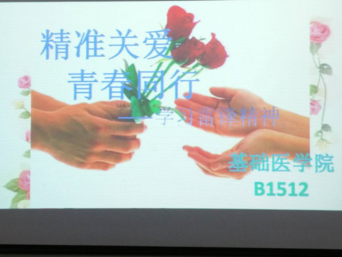 3月5日,为迎接第53个学雷锋日,进一步弘扬雷锋精神,倡导校园和谐风气,形成文明礼仪的良好氛围,基础医学院各班团支部开展了“精准关爱,青春同行”学雷锋主题班会,在各班级团干的精心组织下,活动活动形式多种多样,对雷锋的认识,通过雷锋语录,学习雷锋精神的意义,谈身边的好人好事以及如何传承雷锋精神等方面切入。