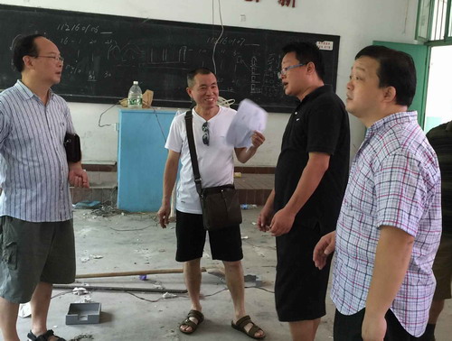 车院长一行对施工中面临的一些问题进行了现场协调,国资处工程修缮科余勇科长、庐峰校区水电科洪秀章科长也分别对施工质量、程序及水电路标准作出了具体的要求。
