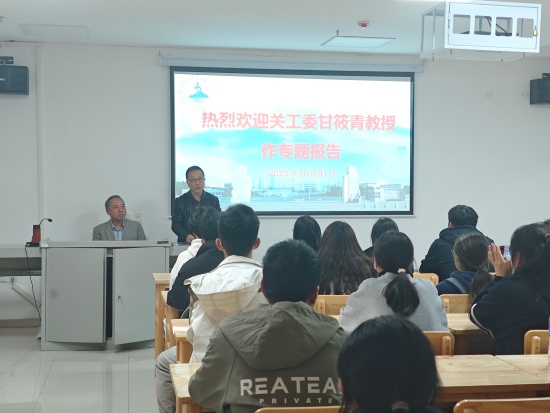 讲座中,甘筱青教授以饱含深情的讲述,回顾了潘际銮院士不平凡的成长历程、深沉的家国情怀、高尚的道义涵养、卓越的学术成就以及对家乡发展的深切关怀。他借助丰富详实的史料与生动感人的案例,系统阐述了潘际銮院士爱国、创新、求实、奉献的精神特质,生动展现了他“国家需要就是我的方向”的使命担当,以及淡泊名利、潜心育人的崇高境界,使同学们深刻体悟到潘院士“读书为了祖国”的坚定信念、“一辈子做好一件事”的执着坚守以及“甘为人梯、奖掖后学”的育人情怀。他勉励同学们要以潘院士为榜样,深刻体悟并积极践行以爱国、创新、求实、奉献为核心的科学家精神。