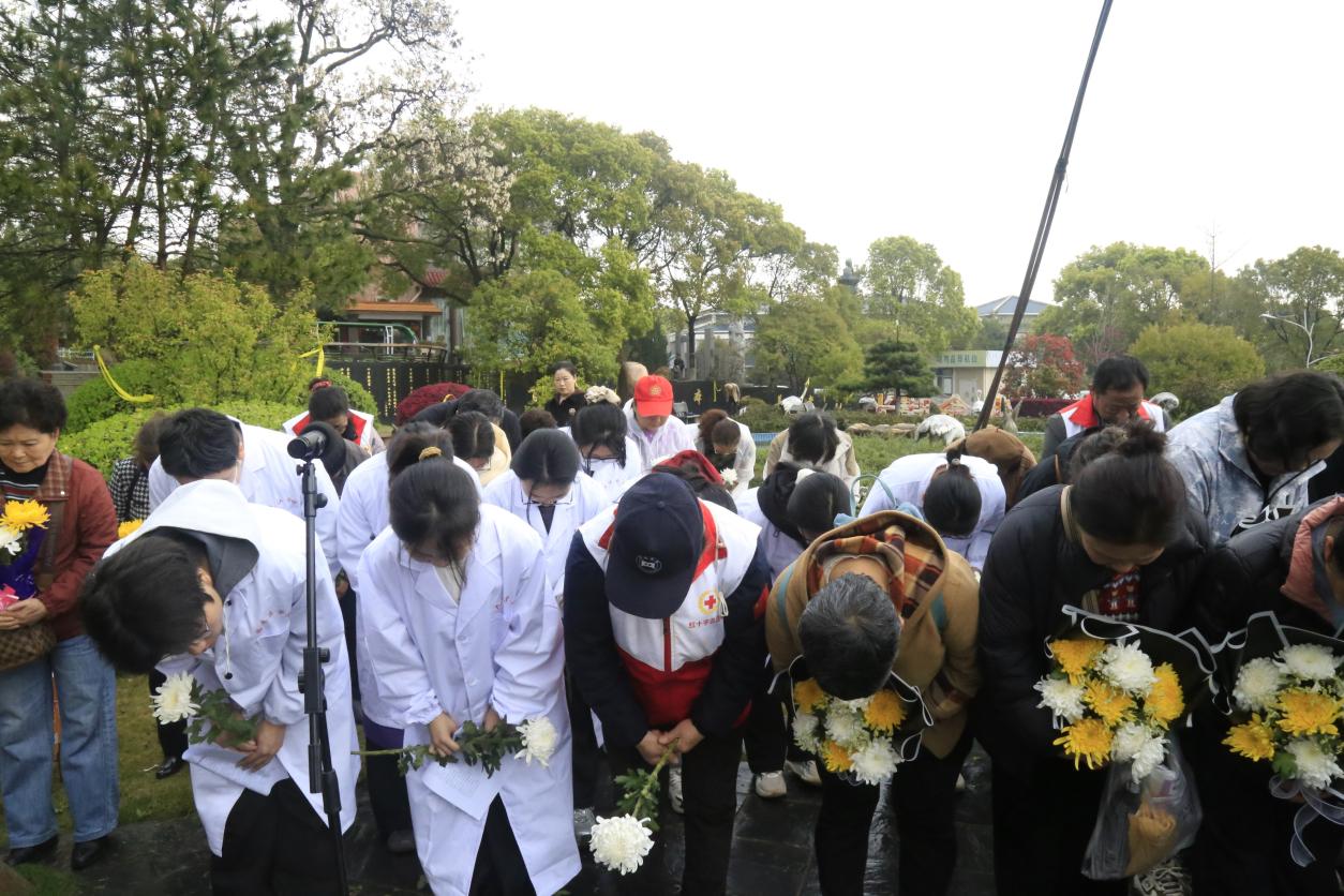 3月30日上午,九江市清明追思活动在贺嘉山陵园遗体器官捐献者纪念碑前举行,九江市政府、市红十字会相关领导和工作人员,基础医学院院长许晓源及学院师生代表到场参与。活动由市红十字会党组书记汪玉贵主持,全员在低沉的哀乐中肃立默哀,深切缅怀每一位无私的捐献者。马海威副市长致辞呼吁更多人加入捐献行列,用奉献延续生命。